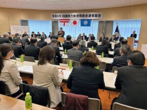 本日は、愛媛県松山市で開催された四国地方会総合政策専門委員会、郵政研四国役員に出席し挨拶をさせていただきました。 挨拶では、参議院選挙結果の総括、郵政事業の現状と課題、郵政関連法案改正の状況等について、お話しさせていただきました。