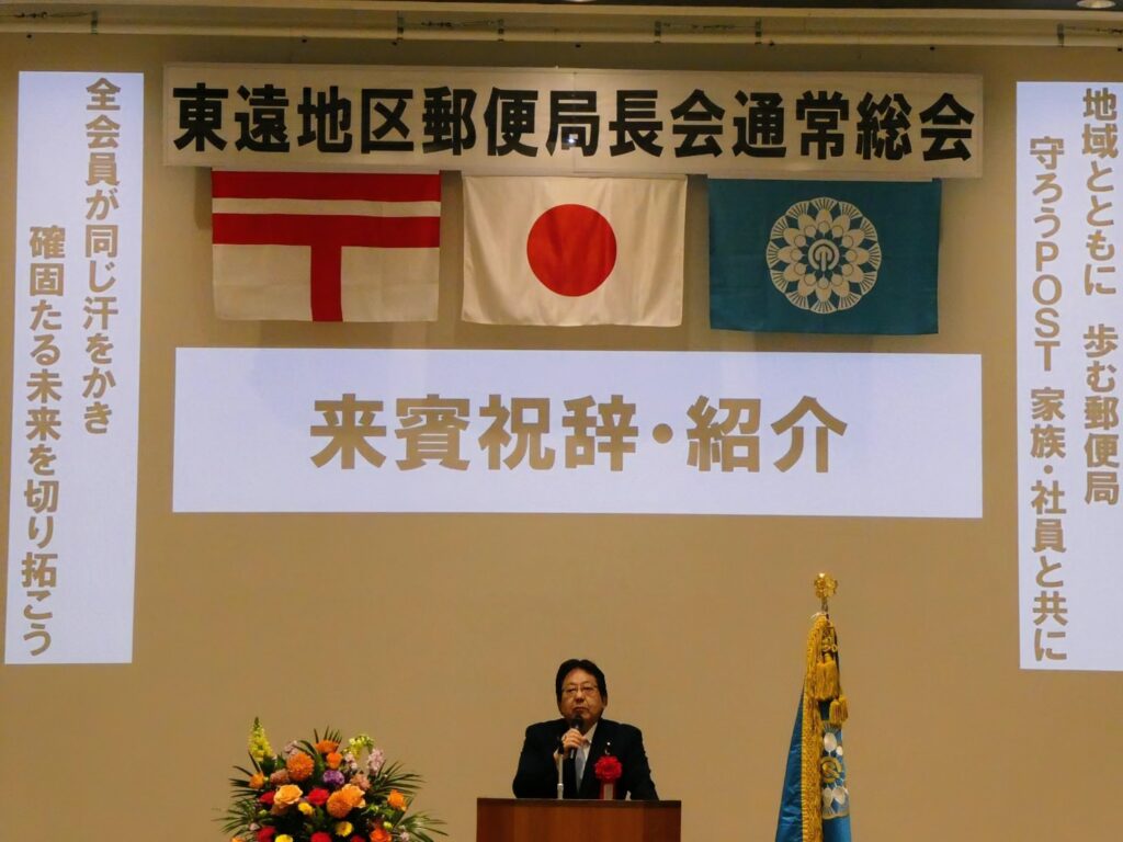 本日は、静岡県袋井市内で開催された静岡県東遠地区郵便局長会(会長:大村 英行)総会に出席し挨拶をさせていただきました。